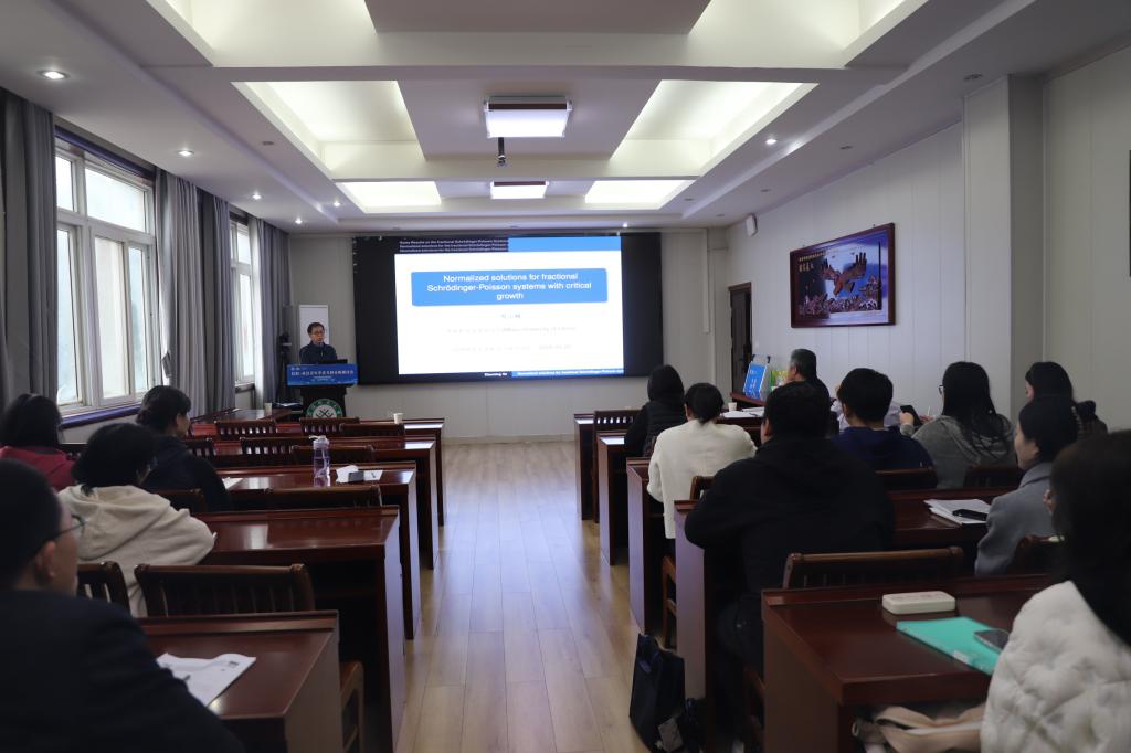 10月20日上午,中央民族大学贺小明教授在数学楼315会议室为我校师生做了题为《Normalized solutions for fractional Schr\”{o}dinger-Poisson systems with critical growth》的学术报告,报告由澳门威尼斯人(中国)唯一官方网站 院长蔡礼明教授主持,学院部分教师及研究生聆听了本次报告。