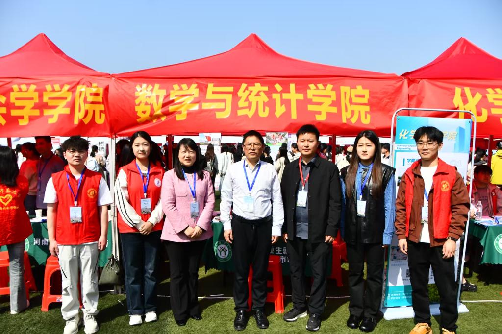 4月10日,河南省毕业生就业市场豫南分市场暨信阳师范大学2026届毕业生春季双选会在学校西操场举行。学院院长蔡礼明,就业指导教师葛文鹏、谢艳丽、吴成熙、李蔚林参加双选会。