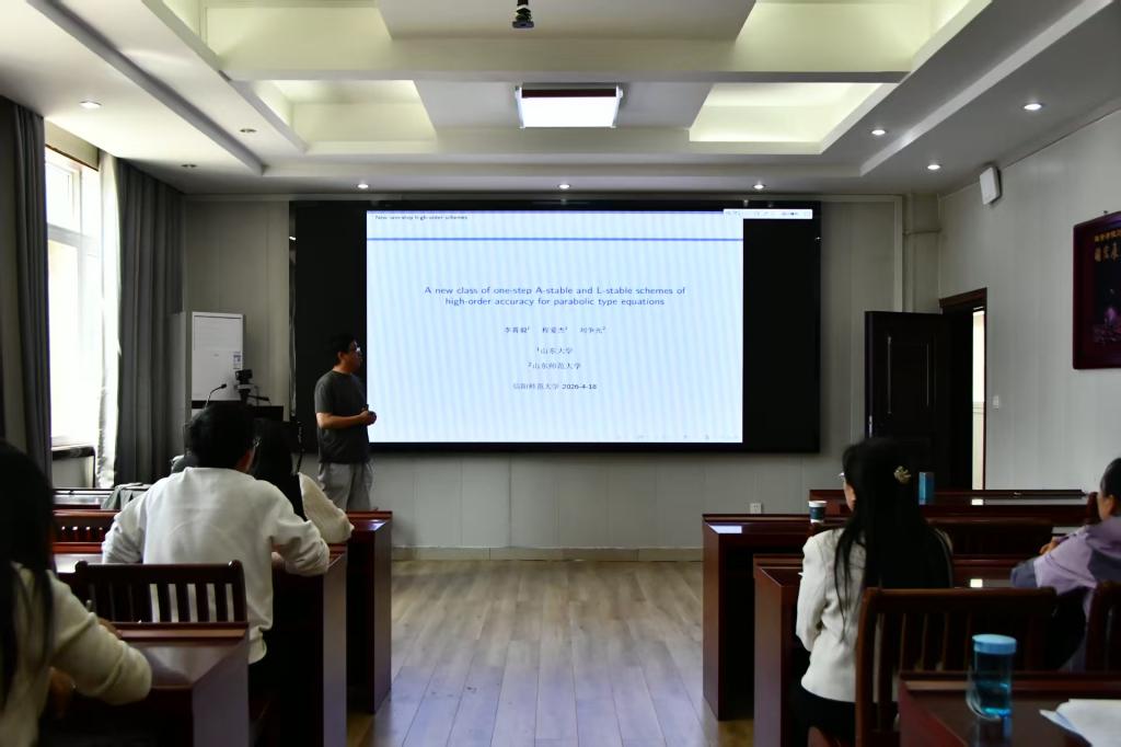 4月18日上午,应澳门威尼斯人(中国)唯一官方网站 邀请,山东师范大学刘争光教授莅临我校,作了题为《A new class of one-step A-stable and L-stable schemes of high-order accuracy for parabolic type equations》的学术报告。报告会由李世顺教授主持,学院部分教师及研究生到场聆听。