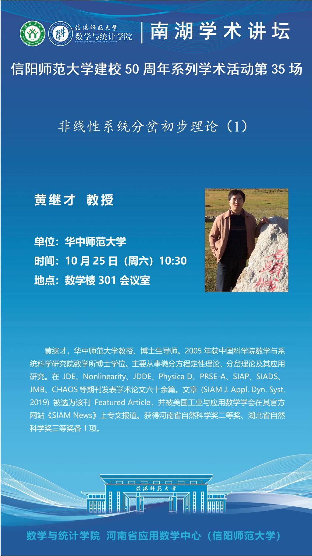 庆建校50周年之南湖讲坛:华中师范大学黄继才教授——非线性系统分岔初步理论(1)